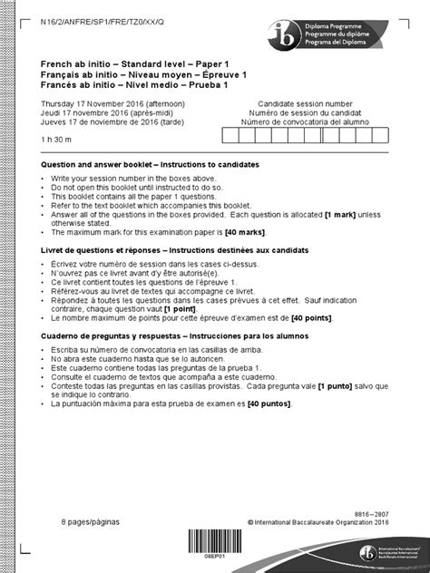 Download IB FRENCH SL PAPER 1 2012 Epub